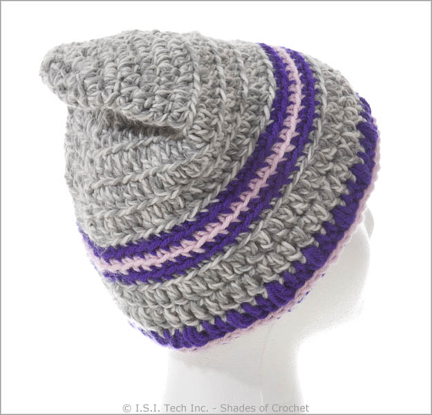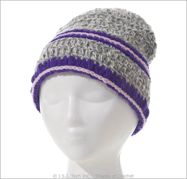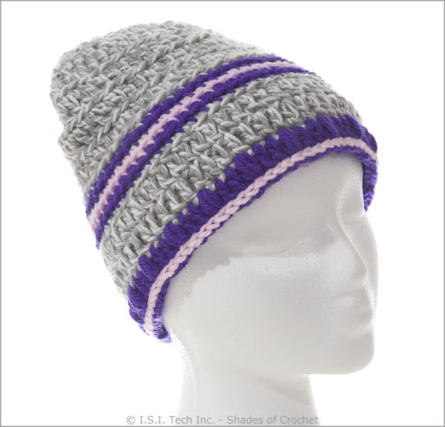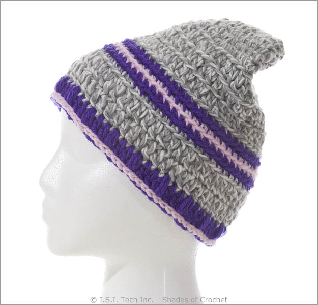 Item Detail - Grey Tuque with Purple and Pink Bands and Squared Top (11-H20158)